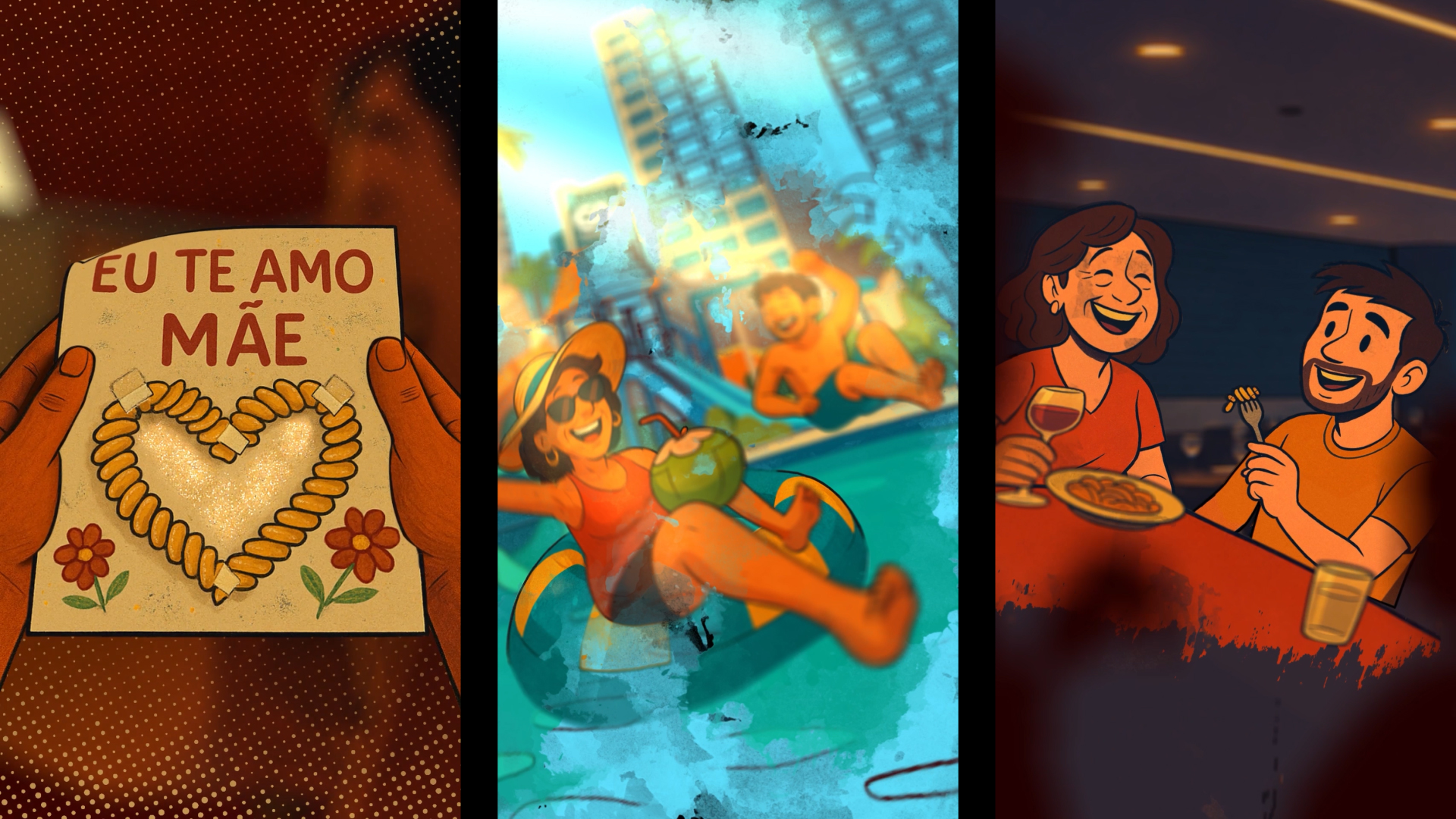 A campanha utiliza uma animação com ilustrações amigáveis para reforçar que o maior presente é estar junto de quem você ama e viver experiências inesquecíveis.